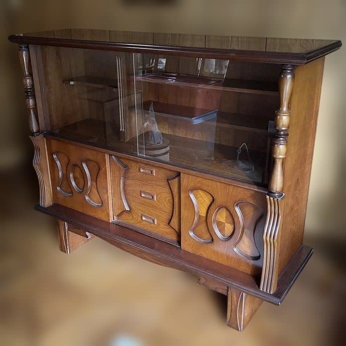 ブラウンの木製キャビネット、ガラス扉付きで4つの収納スペースを備えています。- 色: ブラウン- 素材: 木製- 収納スペース: 4つの扉付き収納- 特長: ガラス扉付きご覧いただきありがとうございます。天板がかなり色焼けしています。たのメル便での発送になります。中古品にご理解頂ける方どうぞ宜しくお願い致します。